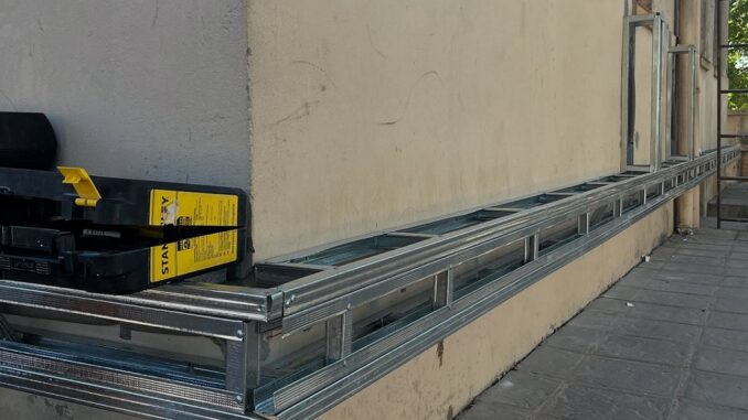 En el sector externo del hospital se llevan adelante trabajos complementarios de infraestructura, donde se está realizando la estructura metálica para embutir las nuevas cañerías de calefacción instaladas en Clínica Médica y Guardia Central.