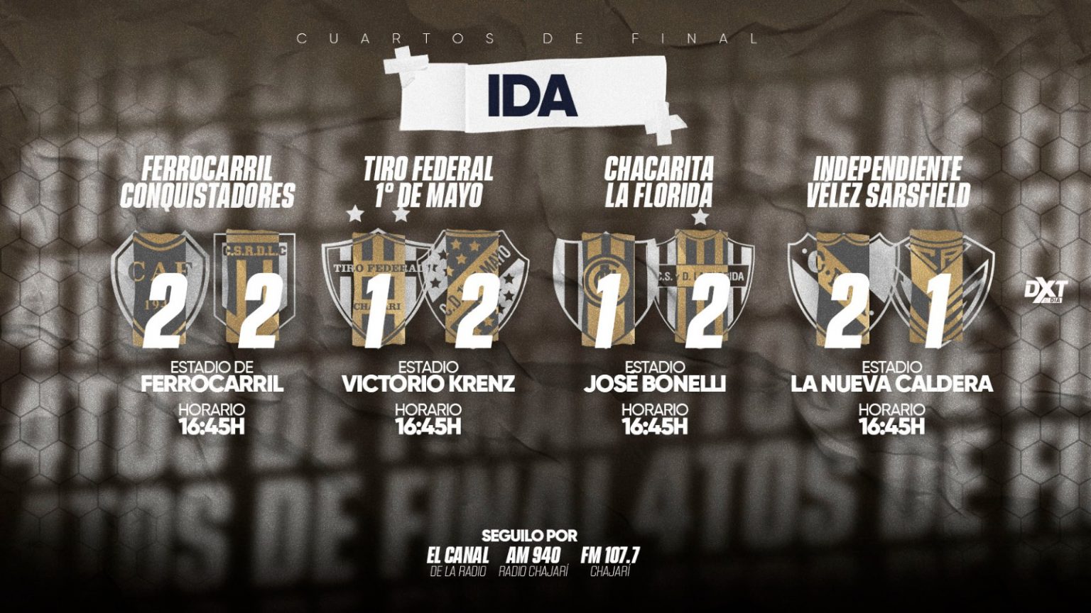 En la jornada de este domingo, como lo había adelantado nuestro medio, se jugaron los partidos de Ida de los Cuartos de Final del torneo local de fútbol, organizado por la liga de la ciudad de Chajarí.