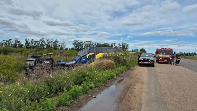 Al llegar al lugar, Km 366 de la Ruta Nacional 14, se comprueba que se trata de una grúa que transportaba un ómnibus de larga distancia y que por motivos a investigar pierde el control y se desvía hasta la banquina del lado Este de la autovía en sentido sur norte.
